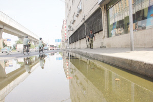 昨日市民李先生向记者反映,河西区大沽南路便道上有污水跑冒,非机动车道出现不少积水。现场看到,污水带长近20米,最宽处占据了一半非机动车道,现场散发着臭味。此外,市民周先生住在河西区解放南路与温州道交口的棉二宿舍大院,门口一口污水井近日出现跑冒,污水顺着低洼处流向解放南路影响居民出行。居民希望产权管理单位尽快维修。
