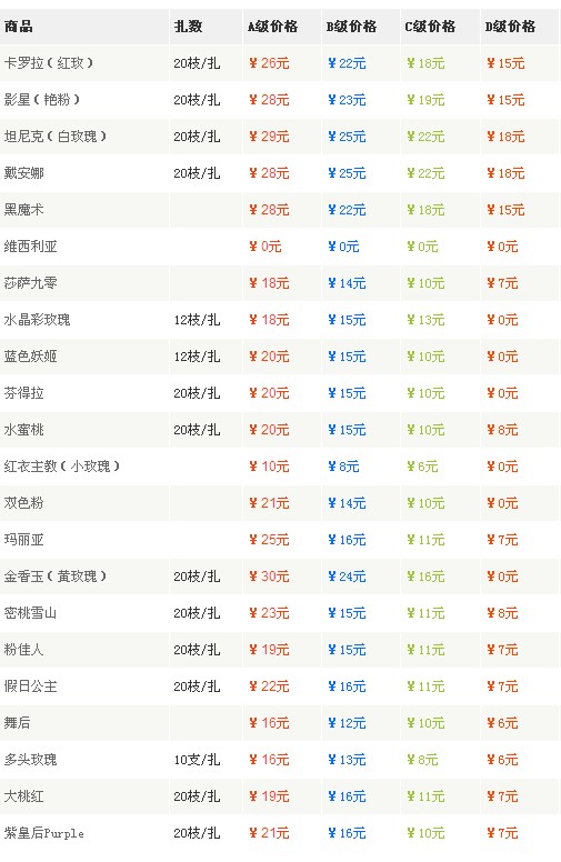 昆明枫兰鲜花2014年10月20日玫瑰花报价